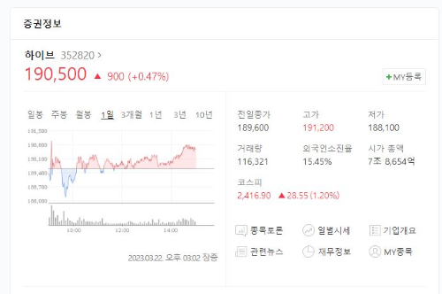 | 지민, 빌보드100 오르자 하이브 주가 날개 (0) | 2023.04.06 |